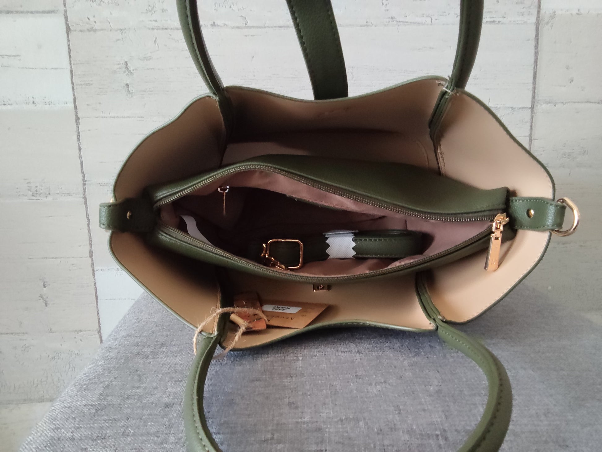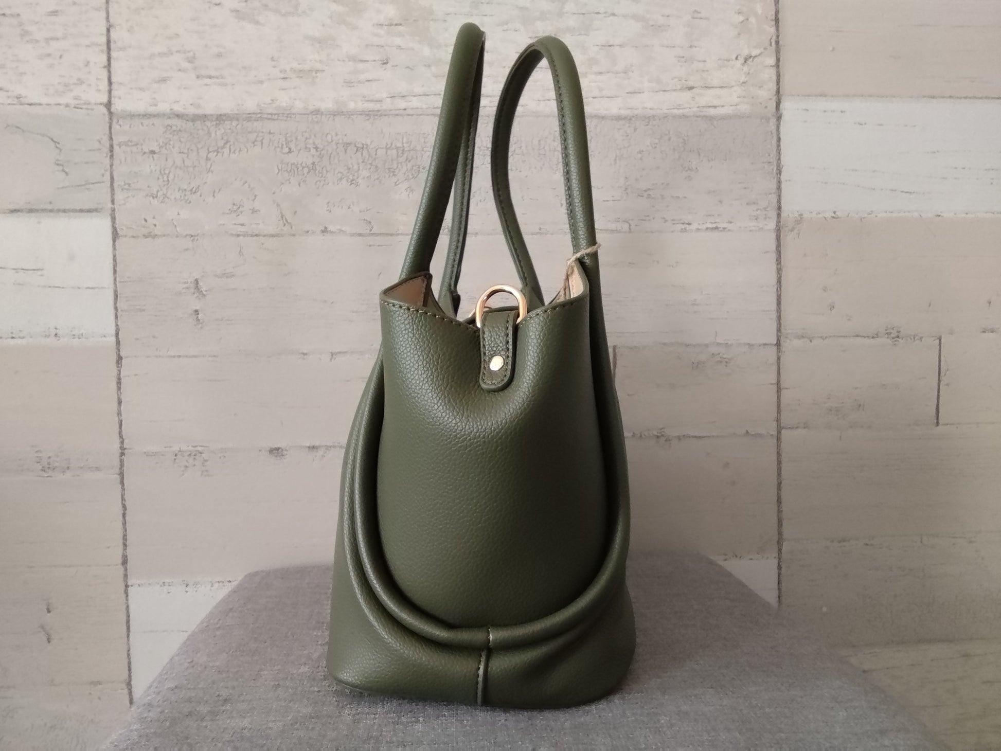Sac à main kaki en simili-cuir grainé, élégant et pratique.