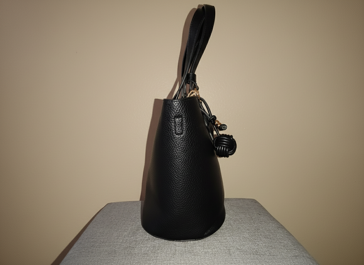 Sac à main en simili-cuir grainé, décoré d'un pendentif en forme de boule agrémentée d'une étoile.